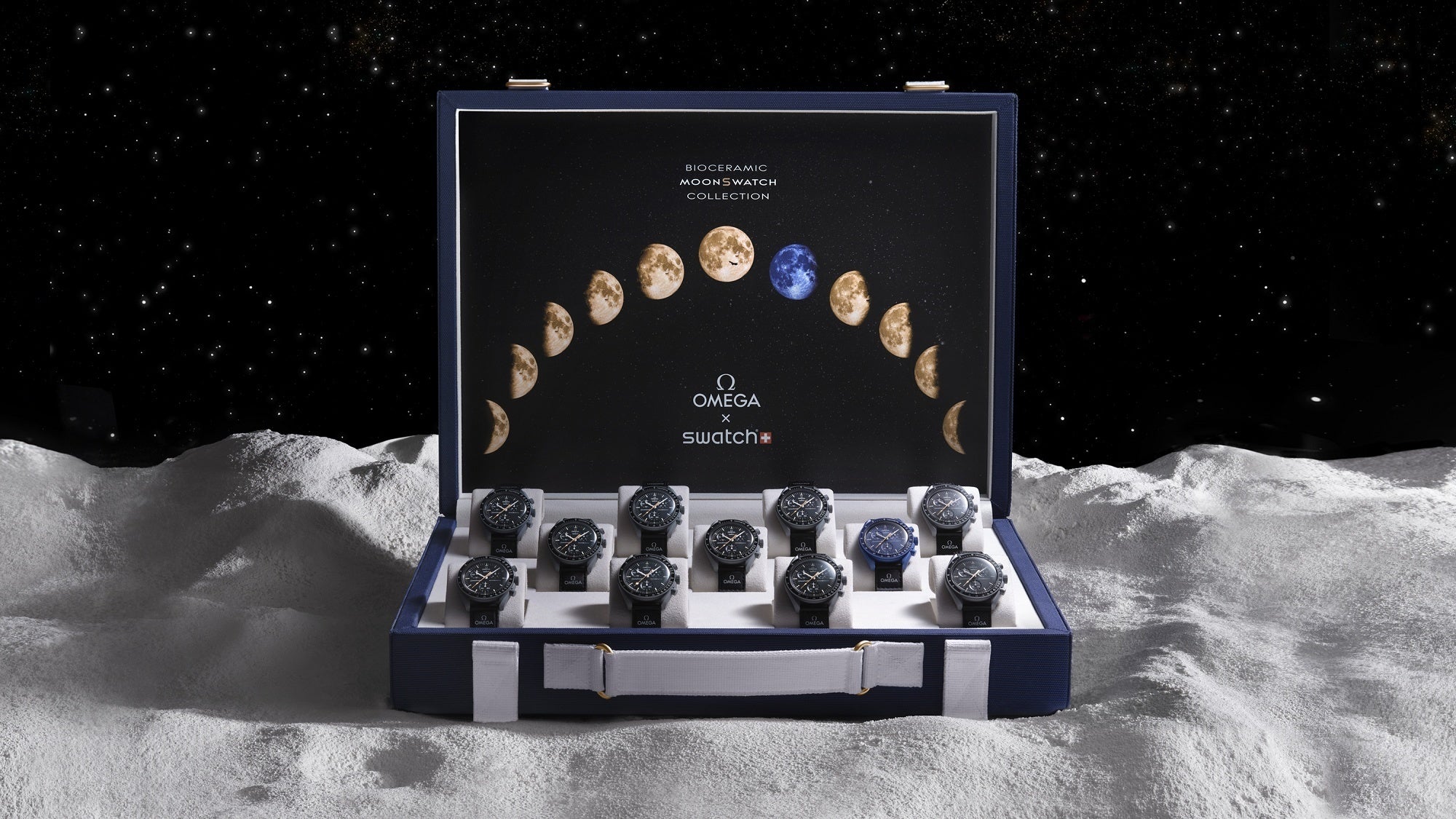 Quell'orologio è il MoonSwatch "Mission to Moonshine Gold – Neptune", opportunamente blu e probabilmente molto tuo (è così facile da amare!). Un orologio in edizione limitata che siamo certi incoronerà l'orologio conveniente dell'anno a dicembre.
